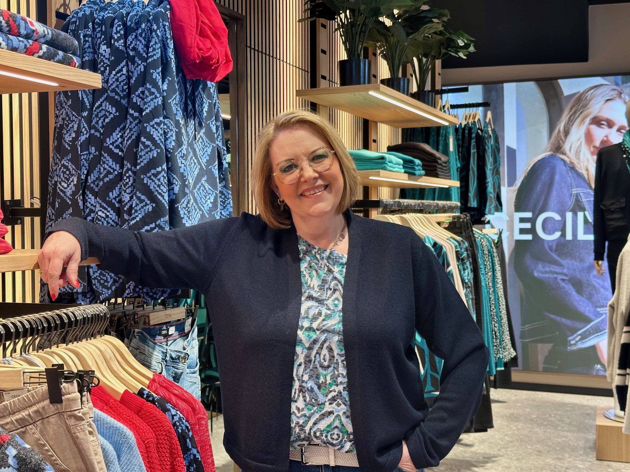 CECIL is een Duits merk dat bekendstaat om zijn hoogwaardige, natuurlijke materialen, zoals katoen en viscose. De kleding heeft de vertrouwde Duitse kwaliteit en bestaat uit goede casual basics, van comfortabele hemdjes tot stijlvolle jeans. “Onze klanten waarderen de combinatie van comfort en stijl,” vertelt Gea. “We merken dat mensen terugkomen voor die fijne basics die je altijd kunt combineren. In onze nieuwe winkel hebben we alle ruimte om die veelzijdige collectie nog beter te laten zien.”