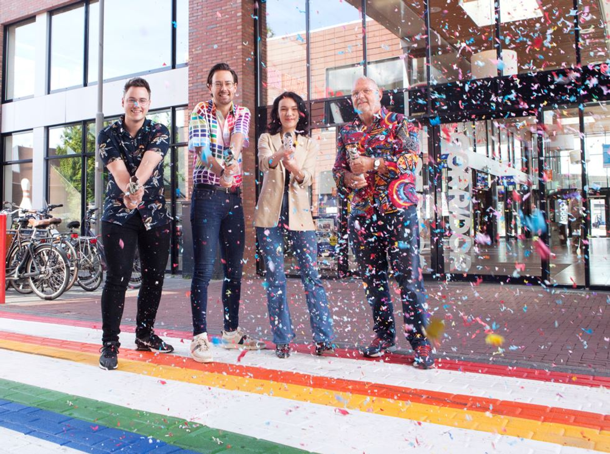 Woensdag 6 juli werd het regenboogzebrapad in Veenendaal onthuld. Wethouder Dylan Lochtenberg, initiatiefnemer Hans van de Braak, Kim Faber en Marc-Jan van Dam lieten de confetti knallen. Met dit regenboogzebrapad wordt in alle kleuren de diversiteit van mensen gevierd. In Veenendaal behandelen we iedereen gelijk, accepteren we iedereen en ben je welkom. Want in Veenendaal mag je zijn wie je bent, Veenendaal is een plaats voor iedereen!