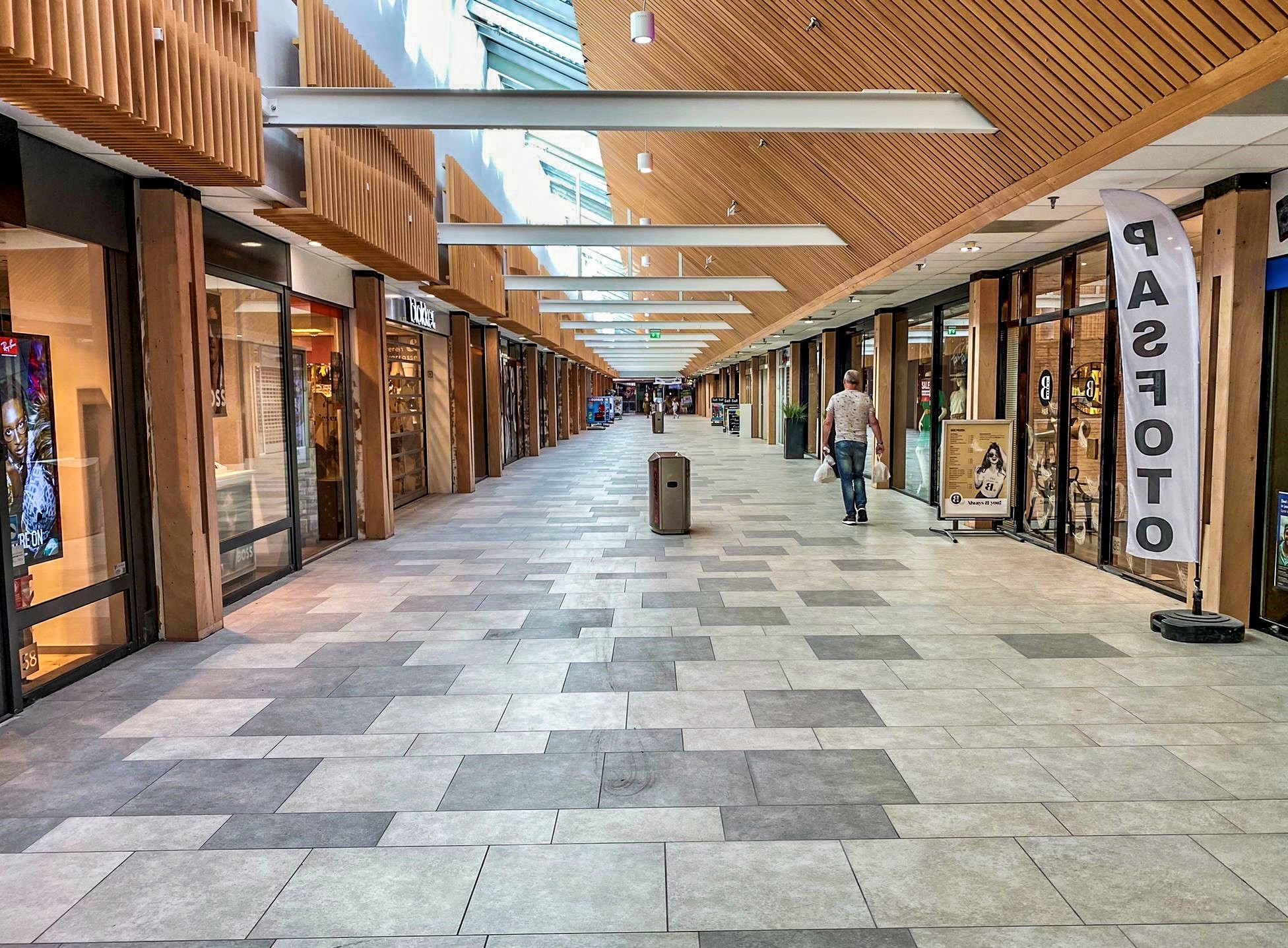 Het zal je vast wel zijn opgevallen. Er wordt een hoop veranderd en vernieuwd in winkelcentrum Passage Corridor. Ter hoogte van de ingang bij de Albert Heijn zijn de vernieuwingen het meest opvallend. Zo ligt er een nieuwe vloer en zijn er houten lamellen geplaatst. Ook is de hoge wand boven de entree van de Albert Heijn voorzien van een nieuw kleurtje.